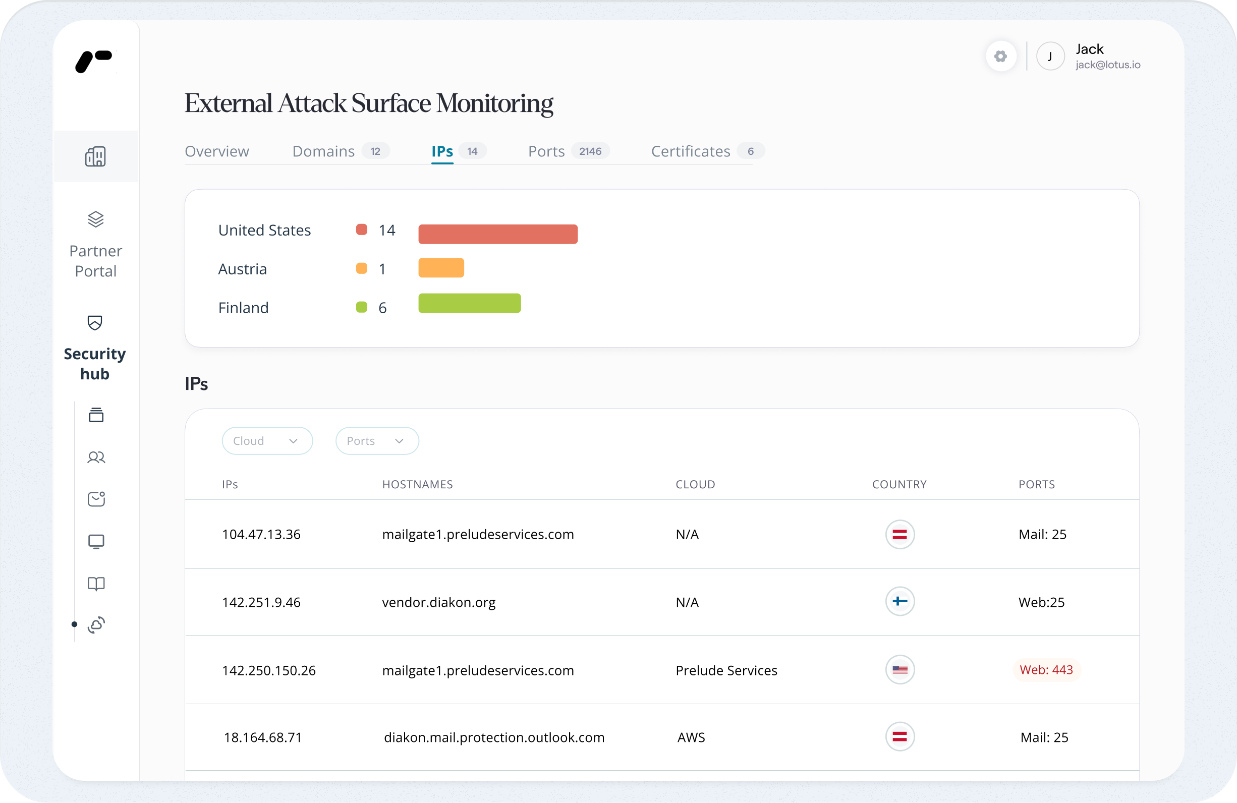 Track IP addresses that interact with your digital assets. The Hub monitors for potentially malicious activity, providing detailed data on IP origin, host name, and port usage. Stay vigilant with constant surveillance of suspicious IPs.